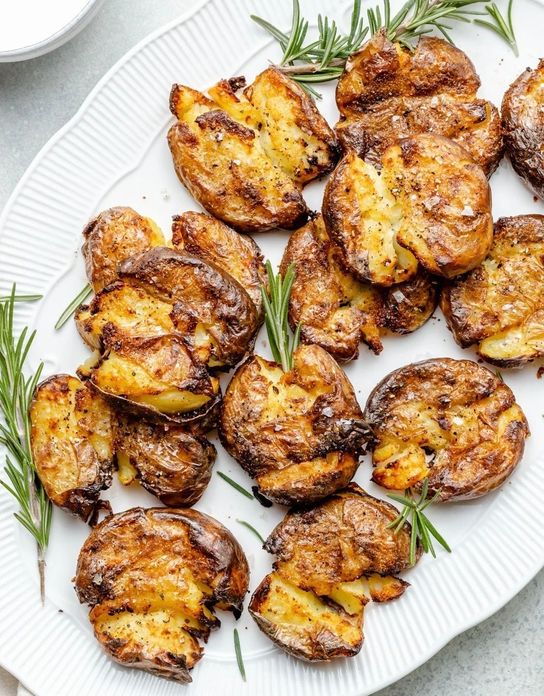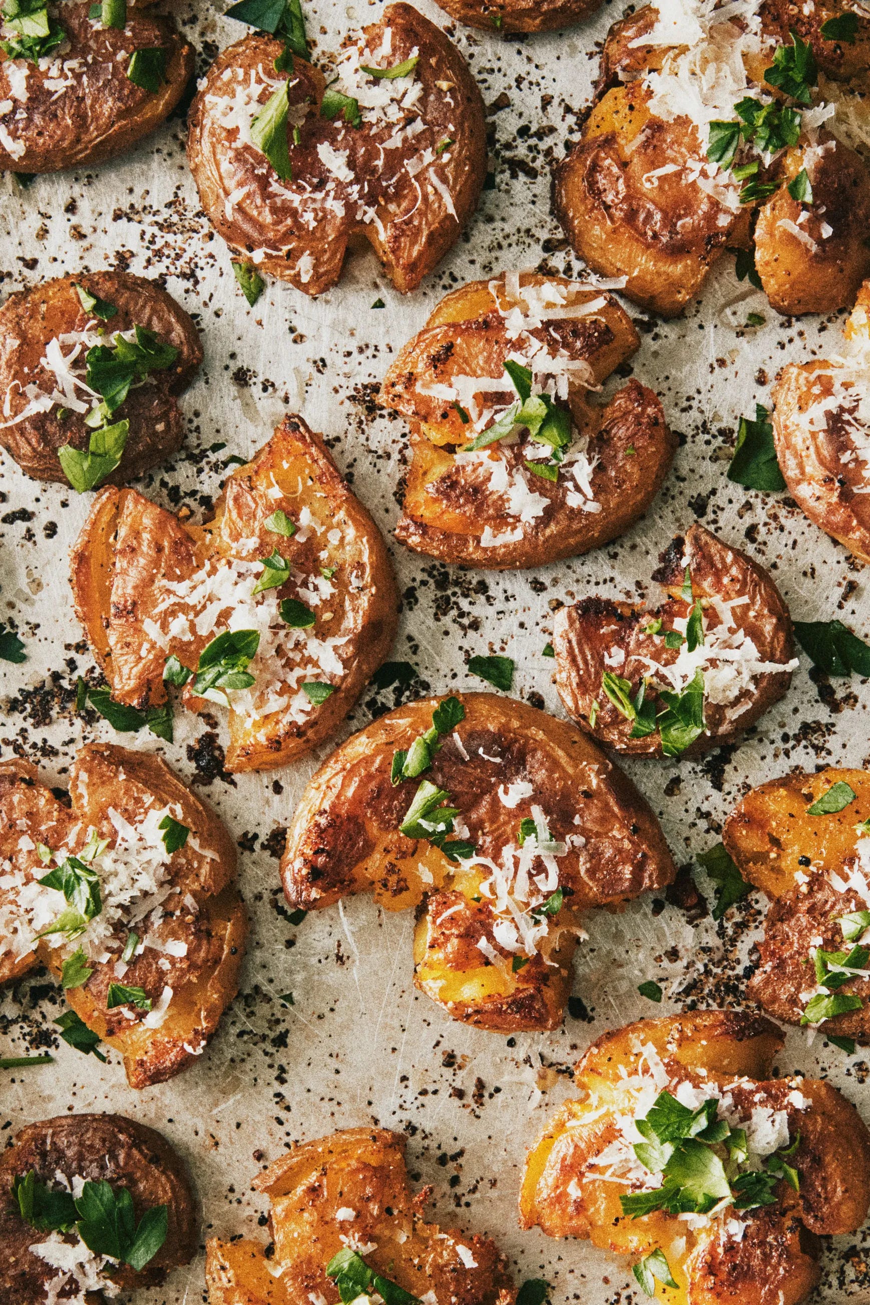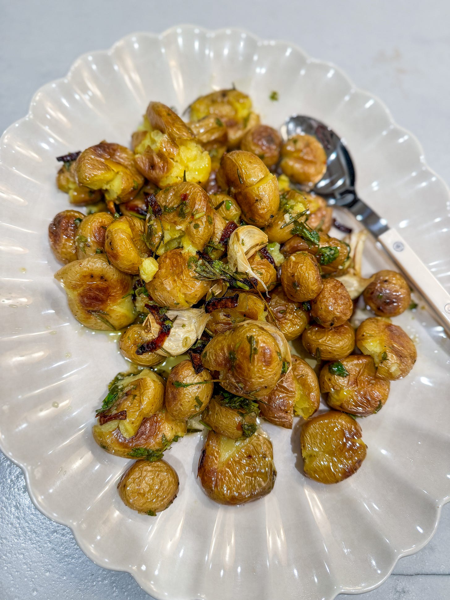 A favorite side dish that’s crispy, golden, and endlessly customizable. I love to garnish with fresh herbs, but you can take it over the top with crumbled crispy prosciutto or bacon, or add some grated cheddar or sour cream and chives…. It’s a potato canvas.